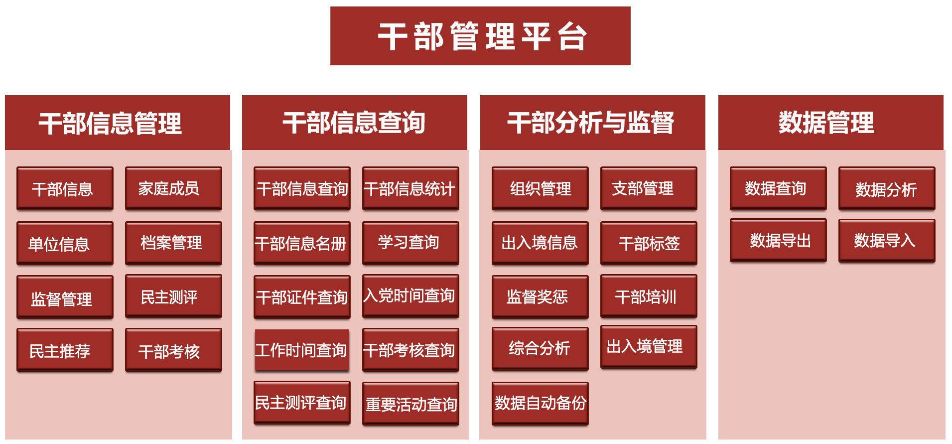干部管理系統是一款管理干部信息的系統,本系統適應各級組織人事部門、機關及企事業單位對干部職工資料進行信息化管理,可替代傳統手工操作,人員資料查閱、相關表格的生成和輸出等項工作中,方便、快速、準確,是提高干部職工信息資料管理的有效手段。